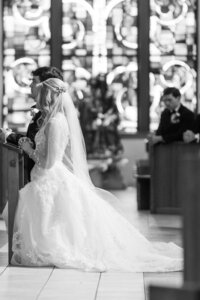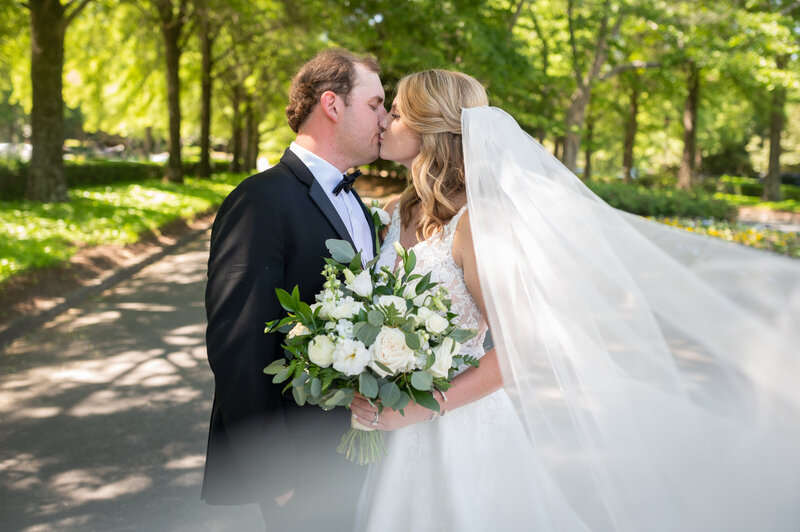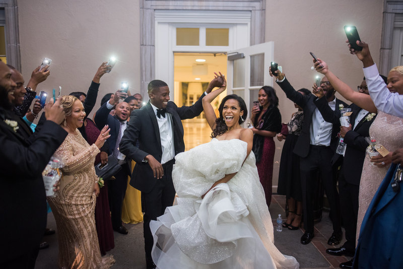 When there is no First Look, the majority of the pictures have to be taken after the ceremony. Family pictures are generally done as soon as the ceremony ends as it’s the easiest time to round everyone up. Next up is full bridal party, and then bride and groom portraits. This generally runs into cocktail hour. We usually have 10-20 minutes for couple portraits.