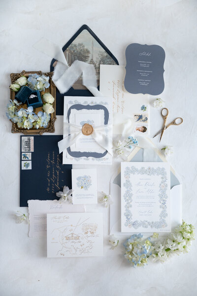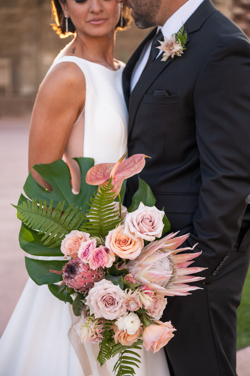 You can ask your florist for additional florals for flay lays. Make sure and have your bouquet delivered in time for the detail shots and for your first look. Often they are delivered in water and need to be dried off before use. Having towels handy can help.